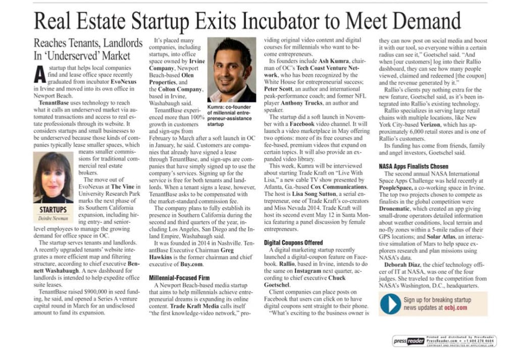NashvillePress Release: Commercial Real Estate Tech Startup, TenantBase, expands to Southern California