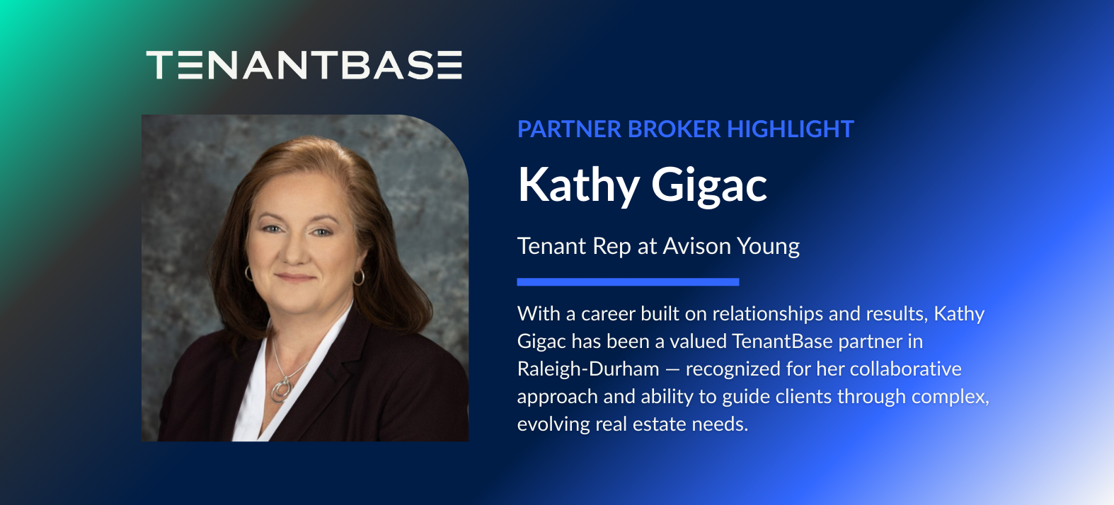 In this Partner Broker Highlight, TenantBase sat down with Kathy Gigac, Managing Director and Tenant Representative at Avison Young, to discuss her unexpected start in commercial real estate, how she built one of the most respected tenant-rep teams in the Carolinas, and the importance of partnership, persistence, and mentorship in a constantly changing CRE market.