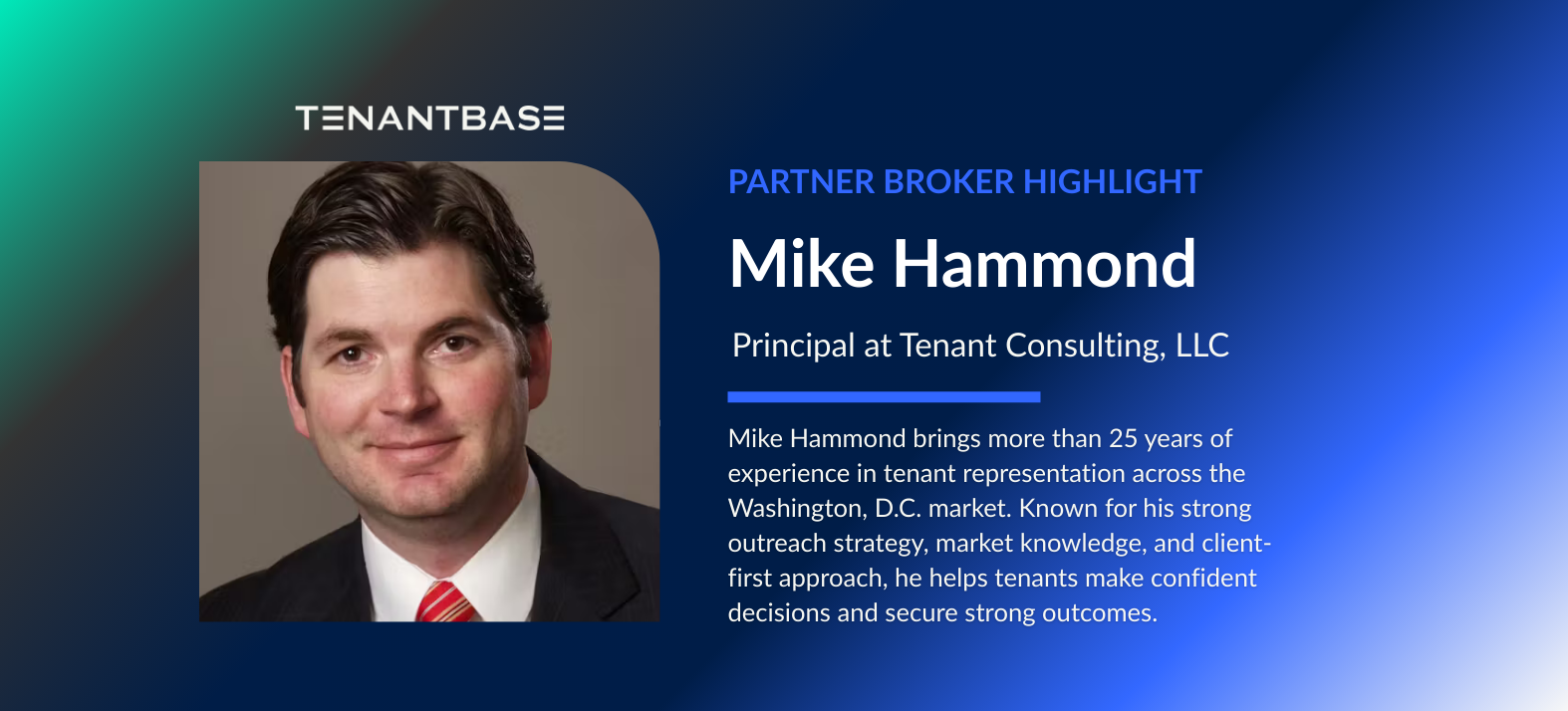 Our thanks to Mike Hammond at Tenant Consulting Group for his continued partnership with TenantBase. Brokers like Mike – analytical, specialized, and committed to long-term tenant value – demonstrate the importance of skilled representation in the DC region and beyond.