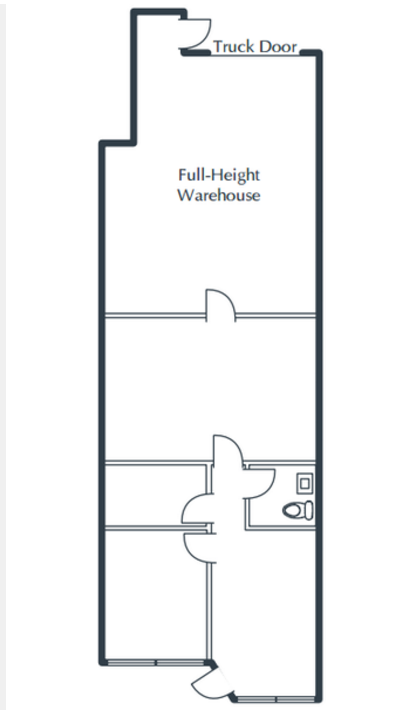 A typical floor plan will lay out the space and describe how much square footage is allocated to each area. Here is an example of a typical flex space on the market: